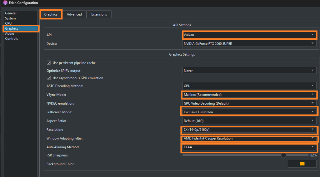 • Graphics Backend: Use Vulkan for better performance (recommended for most systems). If you face issues, switch to OpenGL.